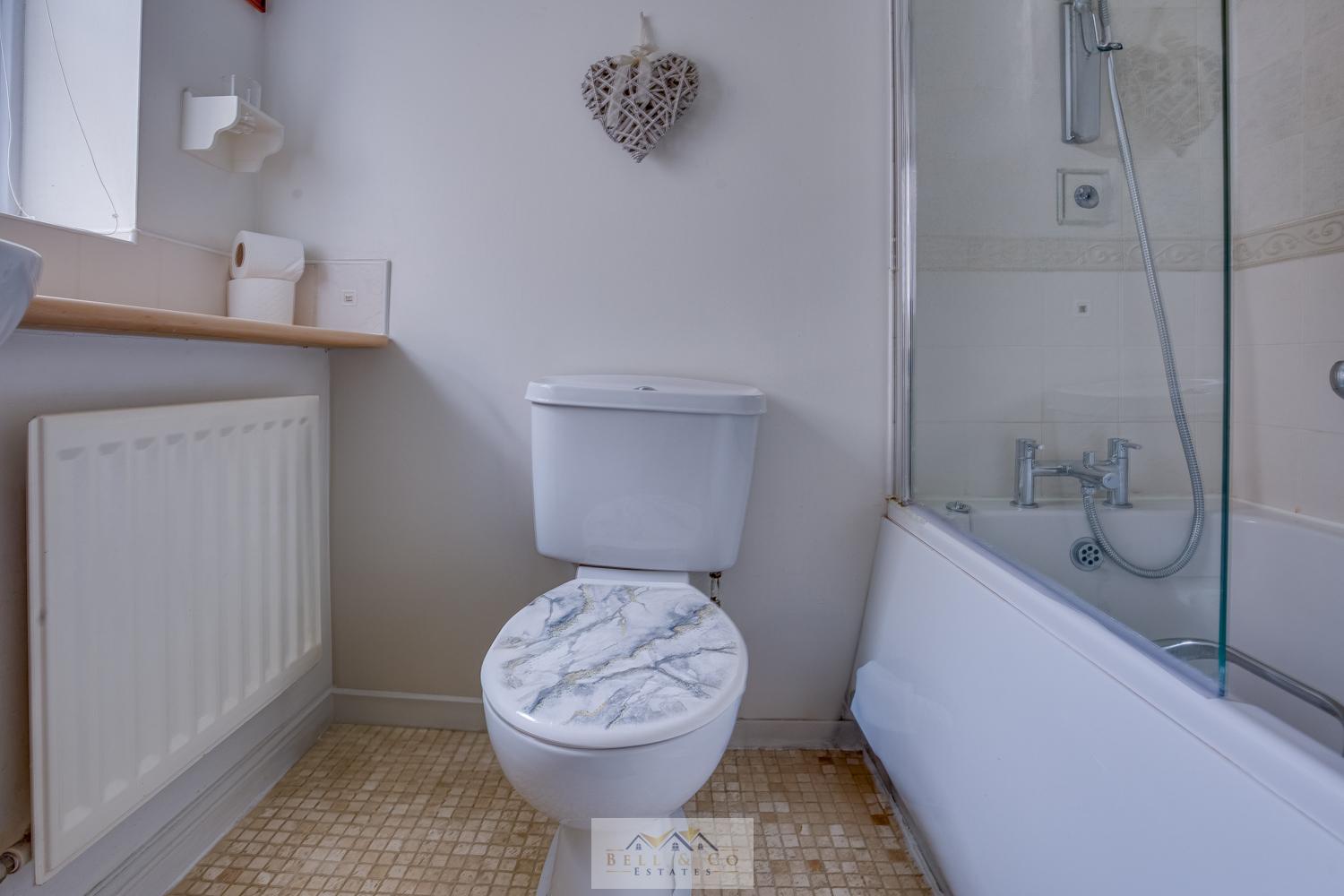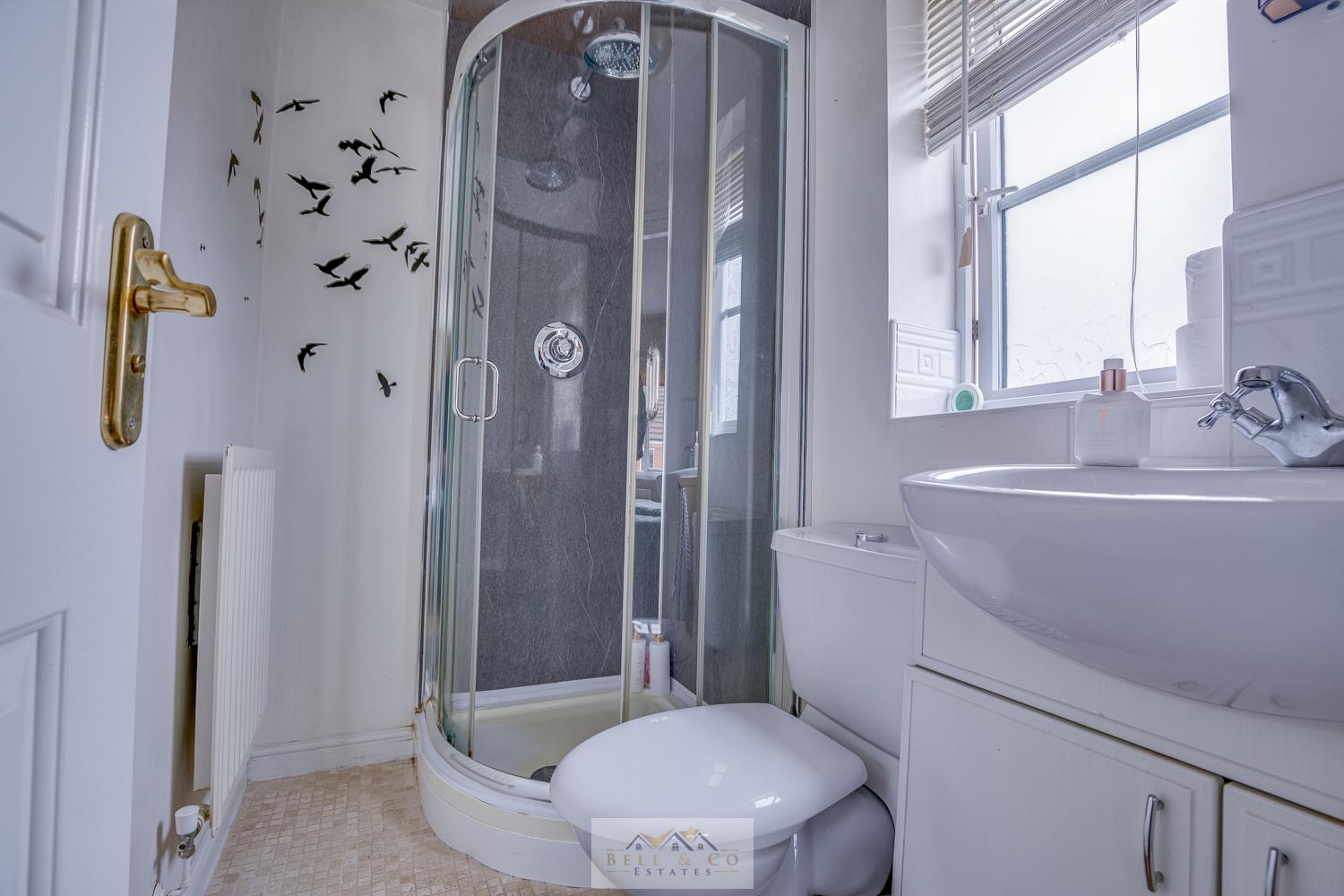 Upstairs houses the master bedroom with en-suite including shower, wash basin, and WC, second double bedroom with fitted wardrobes and good-sized third bedroom, perfect for a child's room, home office or guest space. Contemporary family bathroom featuring shower over bath, wash basin and WC.