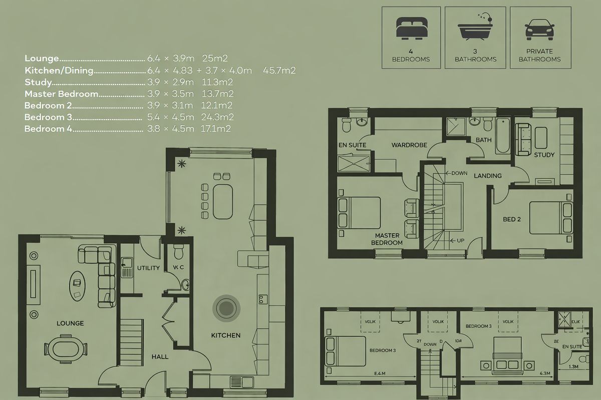 Overall, the layout offers versatile accommodation with four bedrooms, three bathrooms and spacious living areas, making the property perfectly suited for modern family life while maintaining the charm and character expected of a new build property.