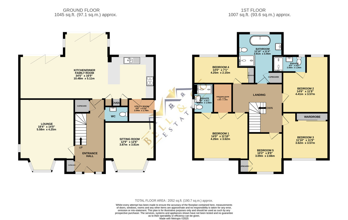- Five large bedrooms, master suite with dressing area and ensuite