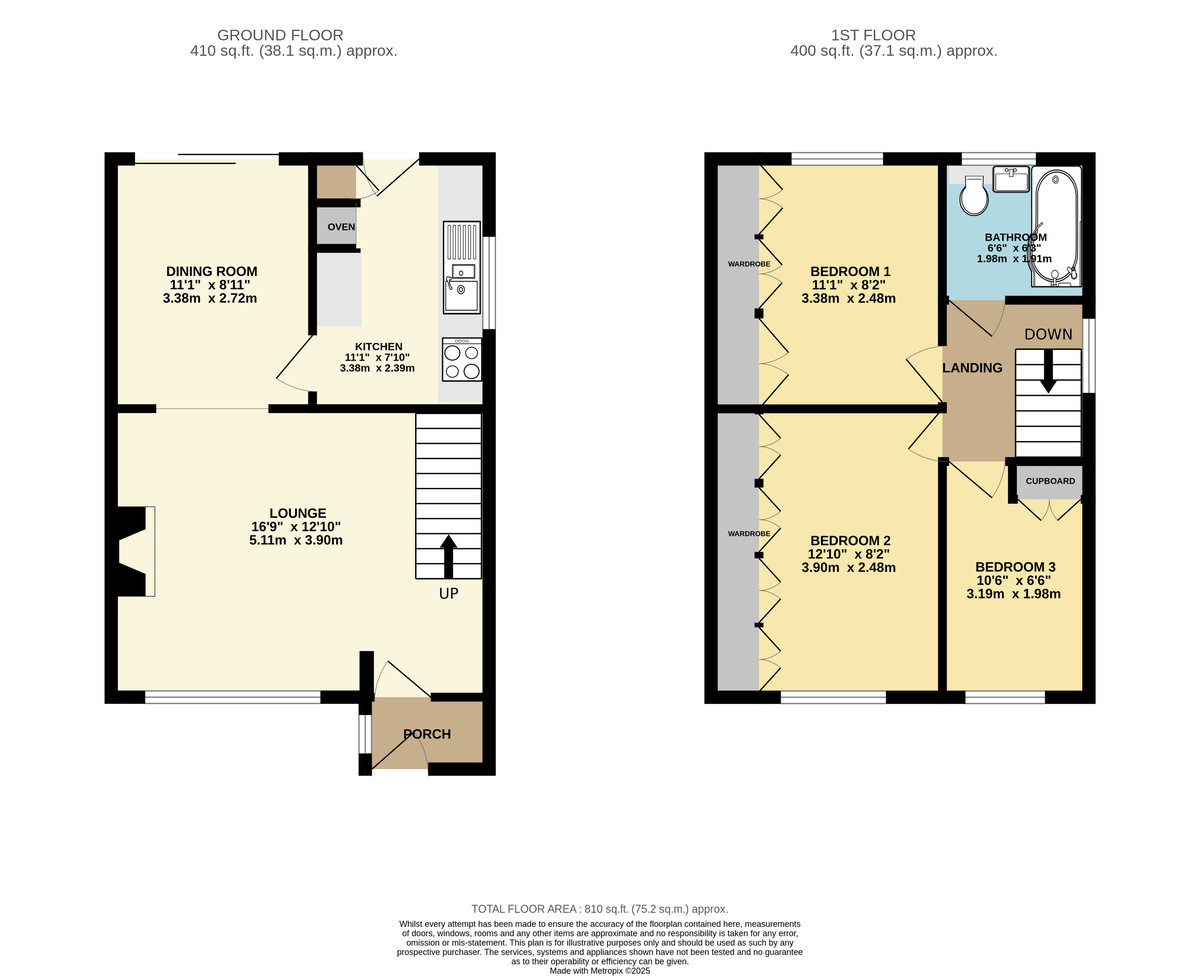 BEDROOM 3 10' 6" x 6' 6" (3.2m x 1.98m) Perfect as a child's room, guest bedroom, or home office with built in cupboard space