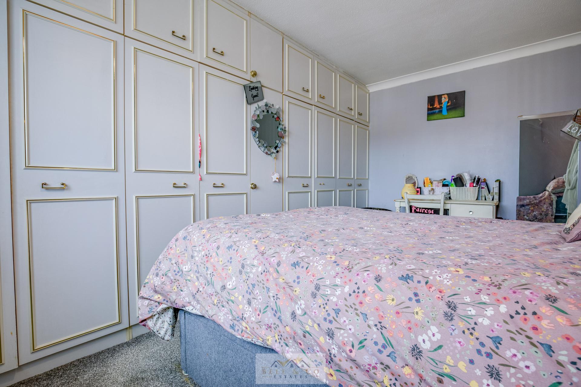 The master bedroom houses built in wardrobes along with the second rear facing double bedroom.