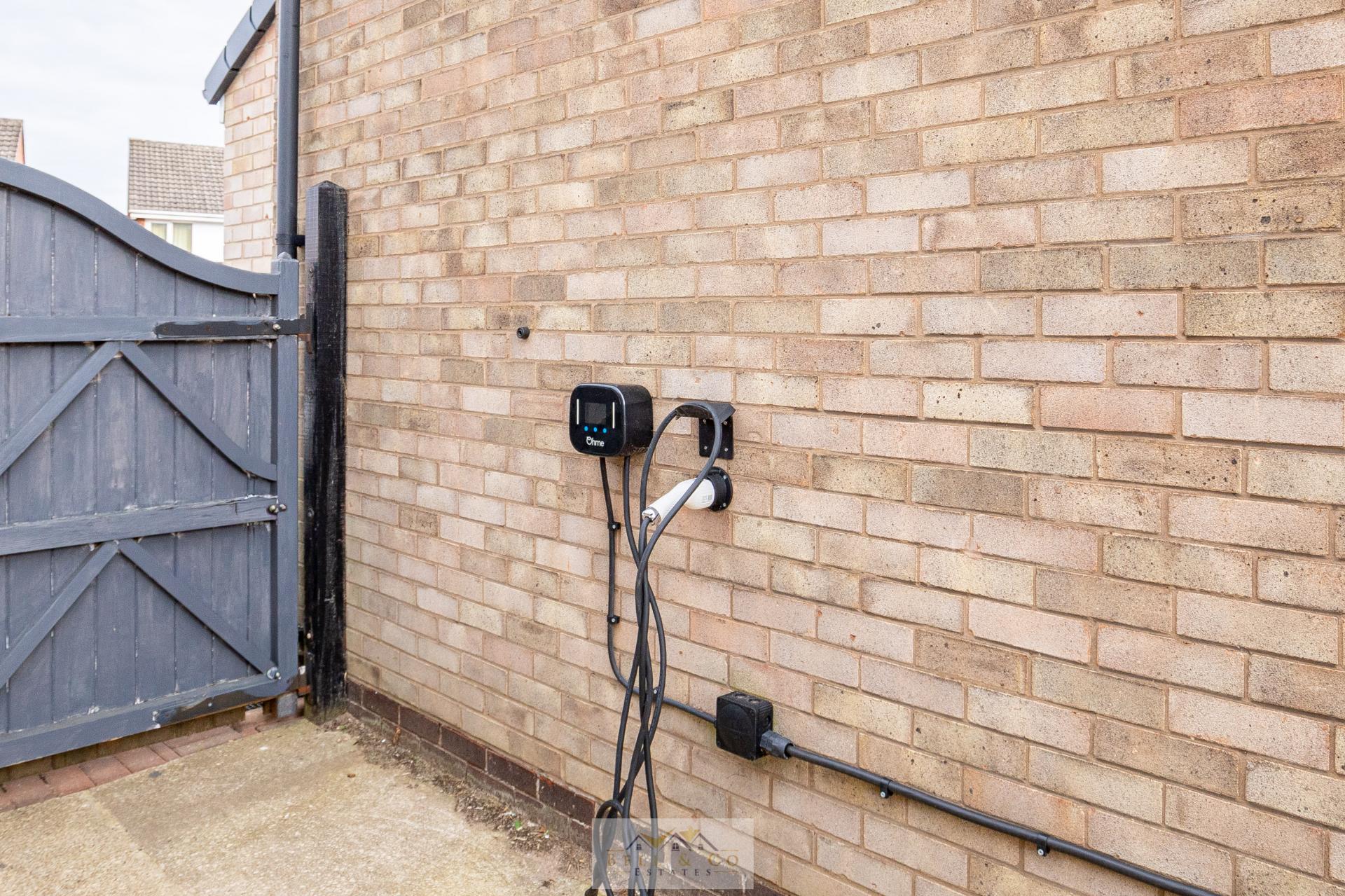 To the front of the property is a driveway providing off-road parking, with pathway leading to the porch, gated entry to the rear garden with access to the EV charging point.