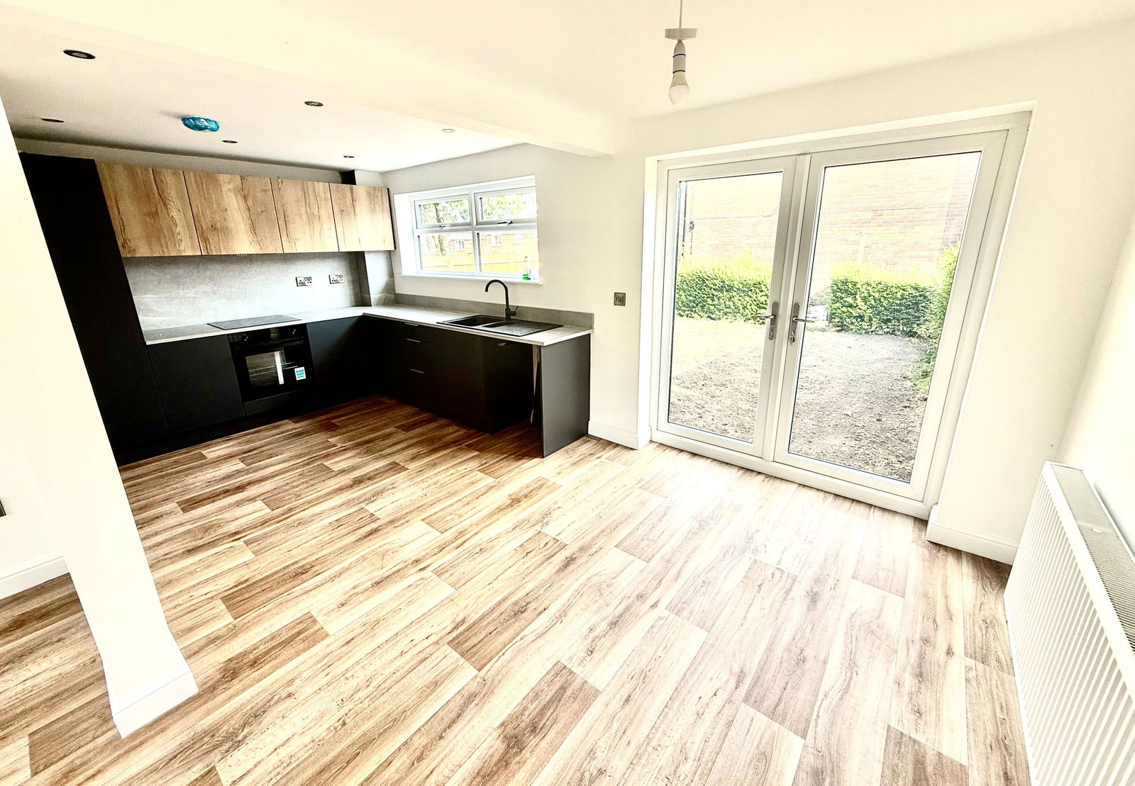An open plan breakfast / dining kitchen has a window overlooking the rear garden whilst twin doors open directly onto the garden. The kitchen is presented with a comprehensive range of modern furniture and has a work surface incorporating a sink unit with mixer tap. There is an integral oven and hob, plumbing for an automatic washing machine and space for a fridge freezer.