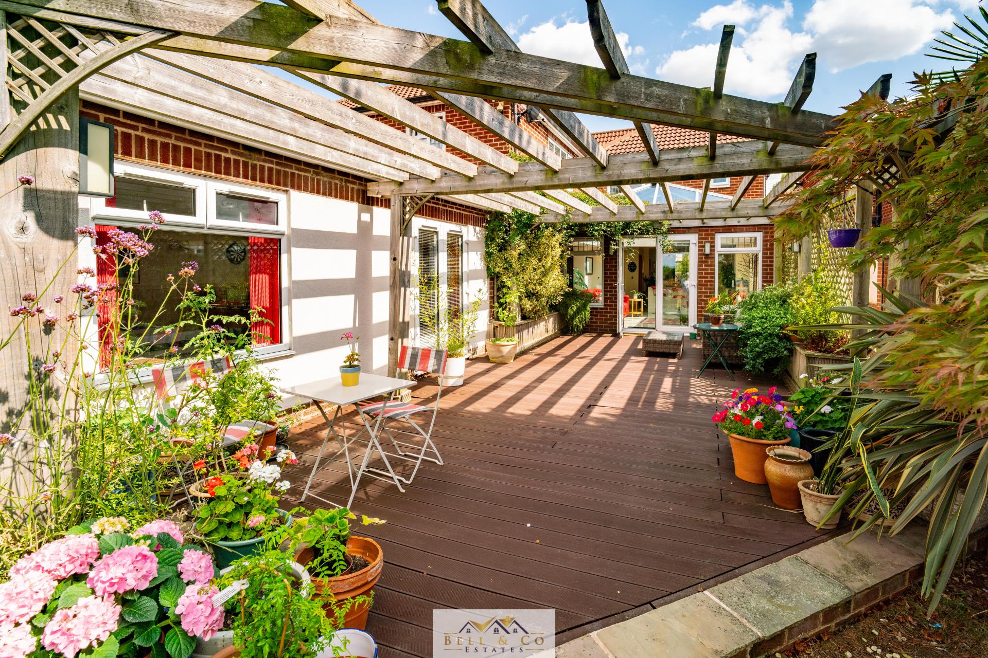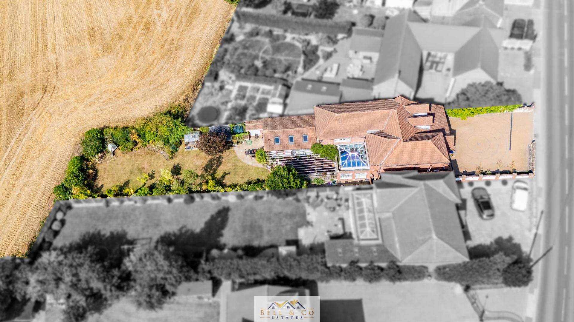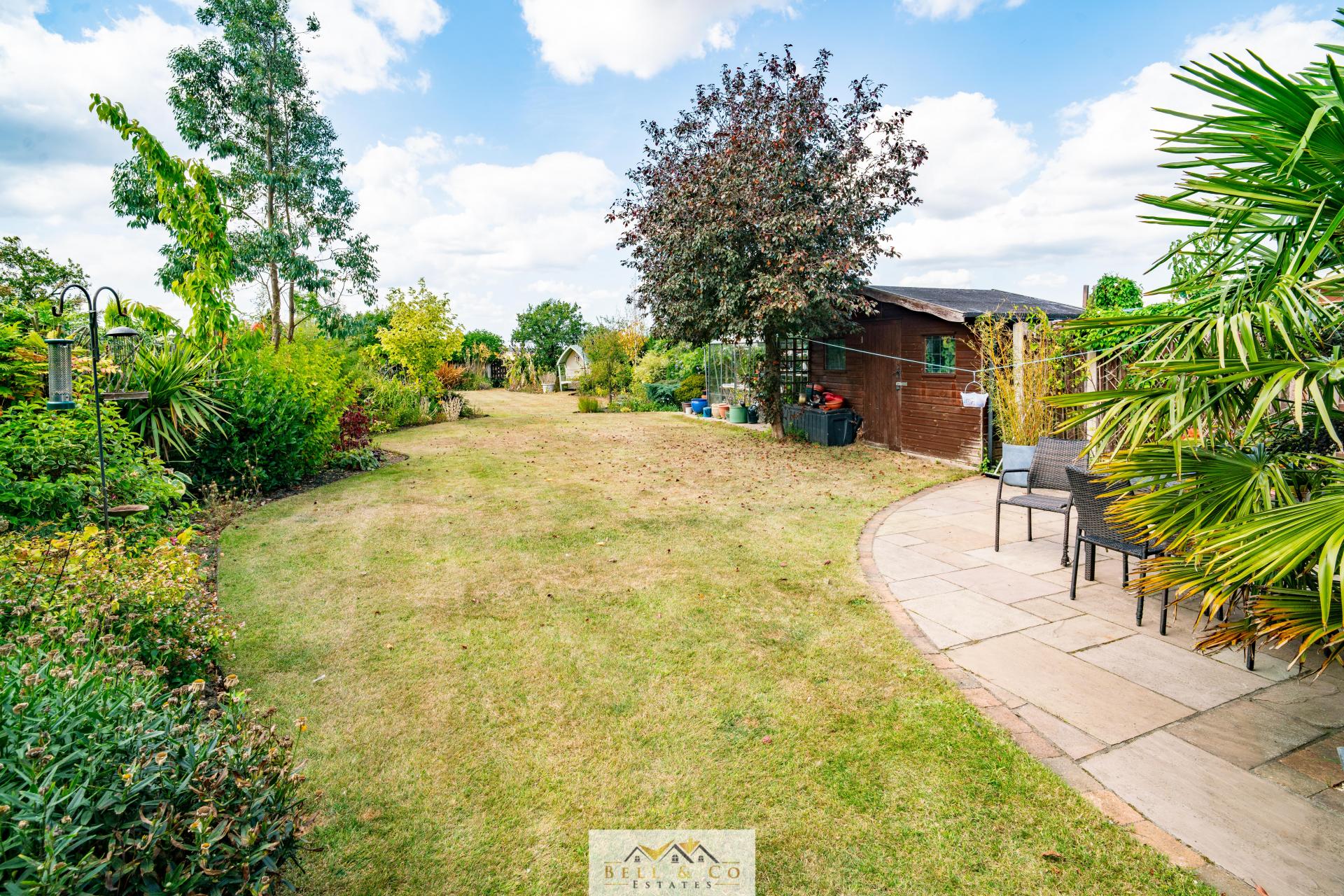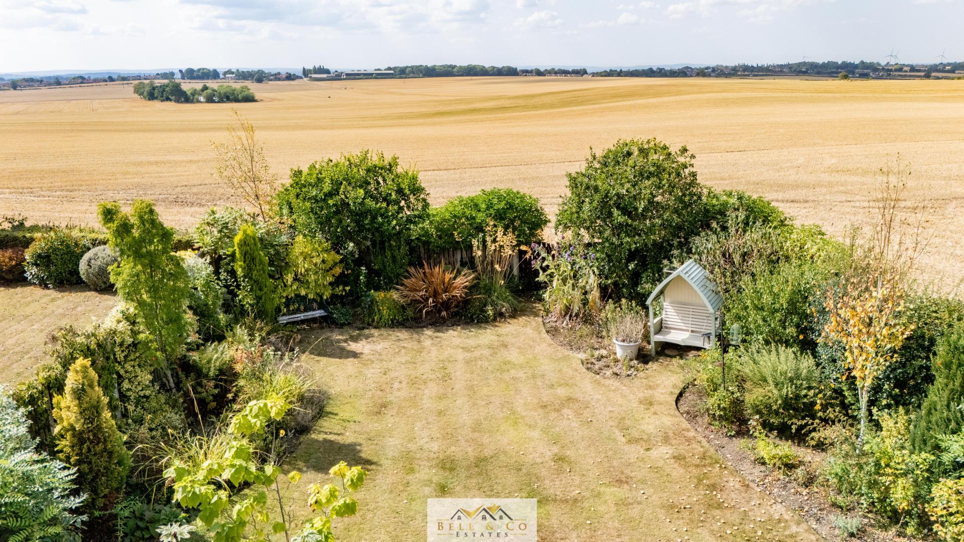 - Large garden with field views