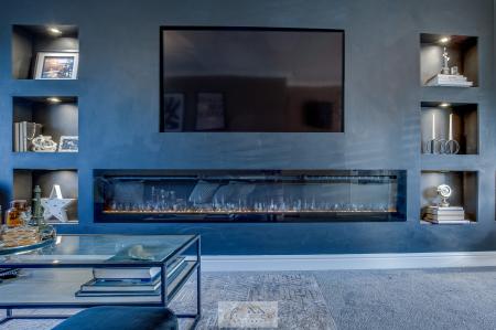 LOUNGE 23' 3" x 11' 11" (7.09m x 3.63m) Stunning formal lounge with media wall with electric fire, with windows overlooking the front and rea gardens
