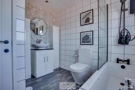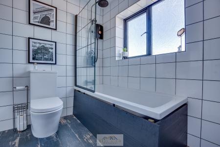 FAMILY BATHROOM 8' 10" x 8' 0" (2.69m x 2.44m) Rear facing family bathroom with shower over bath, sink and WC