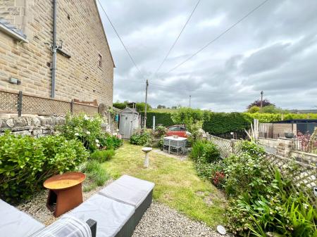 To the rear, you'll find a private enclosed garden bordered by fencing and stone walls. It’s mainly laid to lawn, with pebbled and paved seating areas, mature planting, and established shrubs and flowers creating a peaceful retreat.