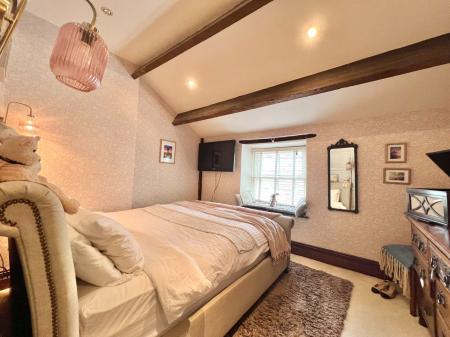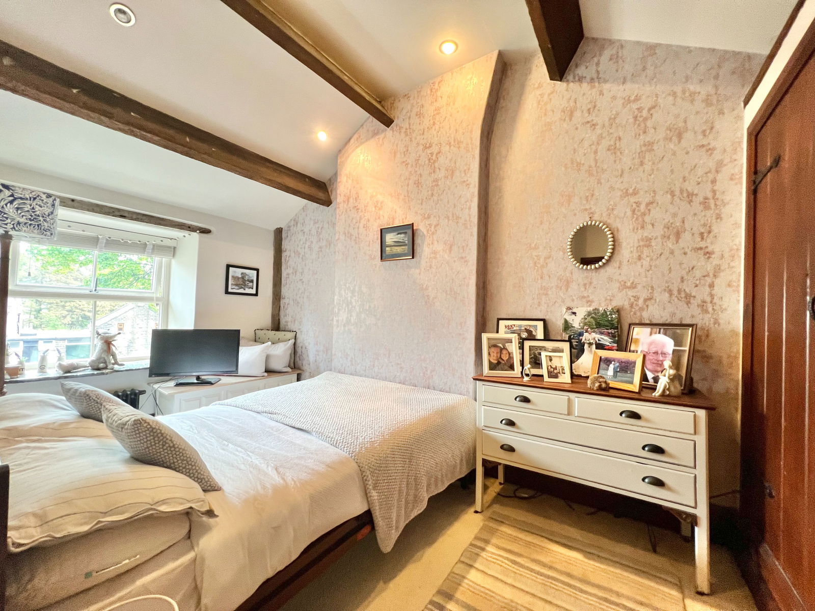 Bedroom 3 (8'6" x 5'8"): A charming single bedroom, ideal for a home office or nursery, with exposed beams and spotlights.