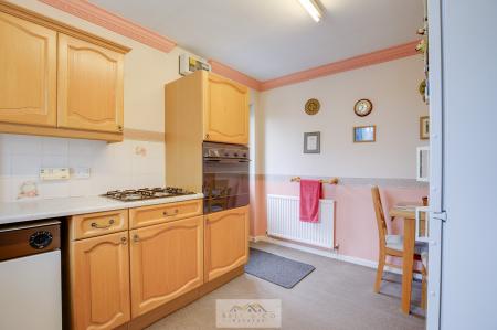 KITCHEN 11' 11" x 8' 11" (3.63m x 2.72m) The modern kitchen provides ample cupboard and worktop space, integrated appliances, and a handy pantry cupboard for extra storage.