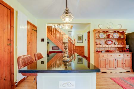 The welcoming entrance hallway leads you into an expansive reception room, boasting a large granite topped island that easily seats four people. This then leads, via double doors, to an impressive a light-filled open conservatory, which creates the perfect place to relax and unwind with underfloor heating.
