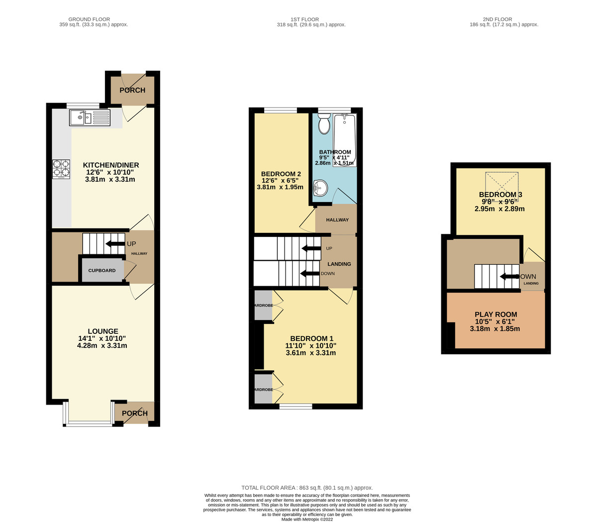 In brief, the accommodation comprises: a welcoming front facing lounge and a spacious, modern kitchen/diner with access to the rear. On the first floor are two well-proportioned bedrooms and a contemporary, recently updated family bathroom. The second floor provides a further single bedroom along with a versatile space ideal for a home office or dressing room.
