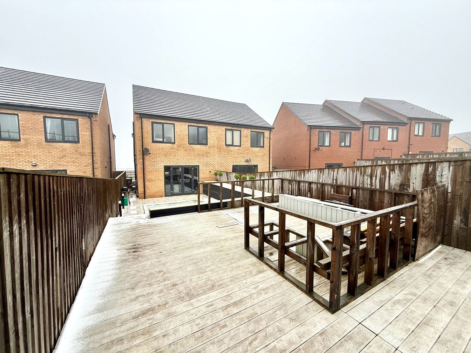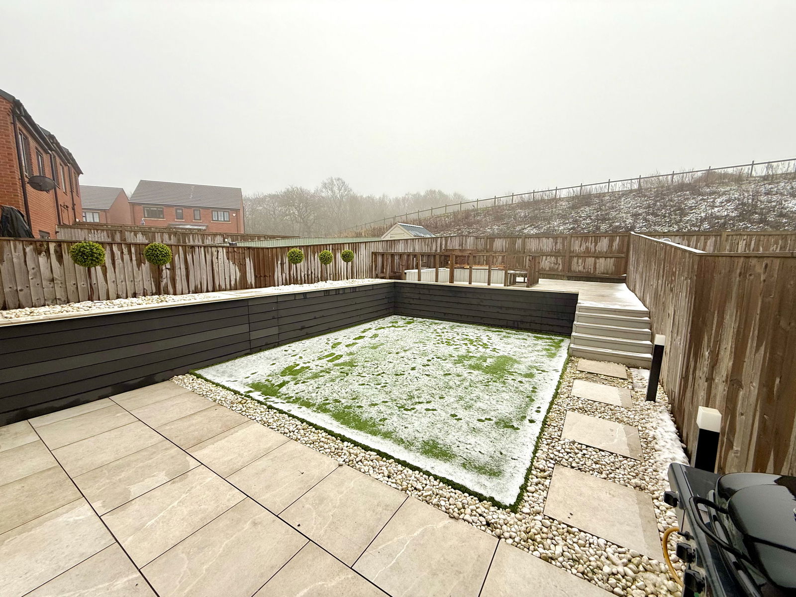 To the front of the property a double block paved driveway offers off road parking. To the rear a landscaped garden enjoys a south facing position, to the immediate rear of the home a paved terrace, a central artificial lawn with surround beds and planted boxes with surrounding lighting. Steps lead up to a decked seating terrace.