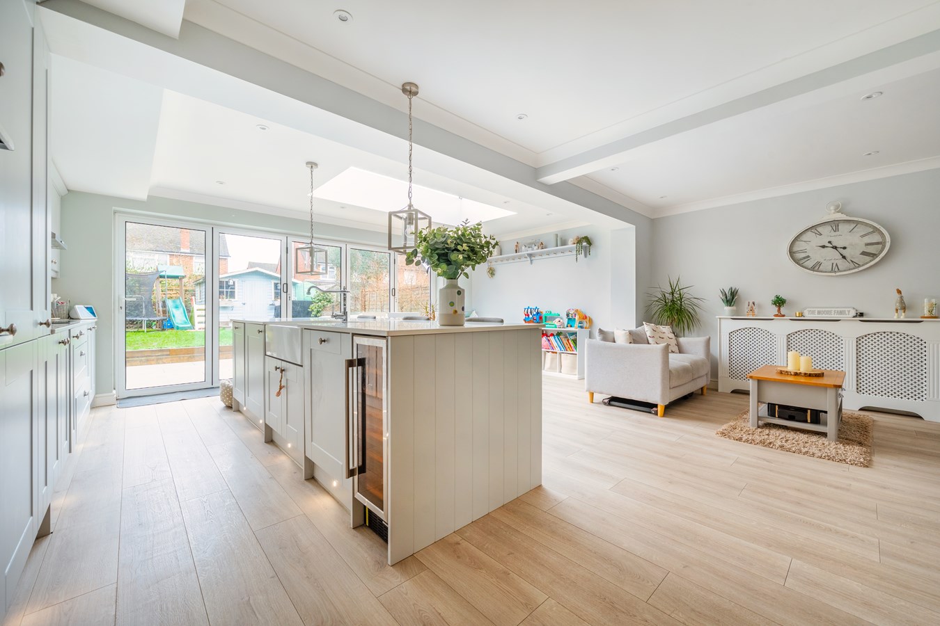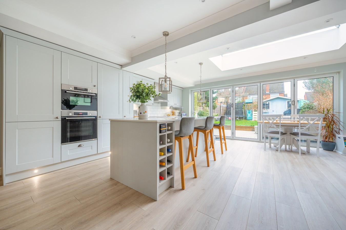 The current owners have significantly enhanced the property and, in our opinion, have completely transformed what is typically a modest kitchen in this style of home into a space far more in keeping with a property of considerably higher value. The rear extension now provides a superb open-plan kitchen and entertaining area, unquestionably the heart of the home. Fitted with a comprehensive range of modern units and integrated appliances, including a wine cooler, the space offers both practicality and style. It is one of those rooms that truly needs to be experienced in person; whether for everyday family life or hosting friends and family, it performs exceptionally well. Bi-folding doors open seamlessly onto the rear garden, creating a natural flow between inside and outside living during the warmer months and making the property particularly well suited to entertaining. To the front of the house is a comfortable and welcoming living room, ideal for quieter evenings away from the hub of the home. Completing the ground floor accommodation is a convenient downstairs cloakroom and a useful utility cupboard, both essential additions for modern family living.