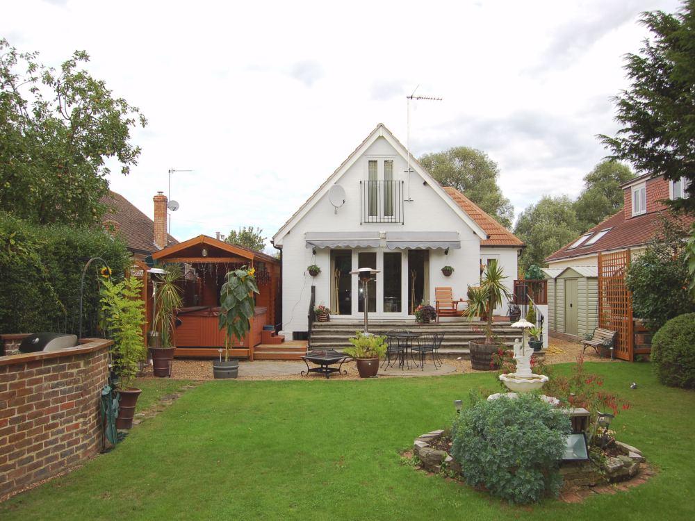 Rear GardenRear Garden comprising; large brick built-in bar-be-q, patio seating area, pond, and decked seating area. The garden also has the added benefit of a Jacuzzi set into decking and an outdoor shower (these are subject to negotiations).