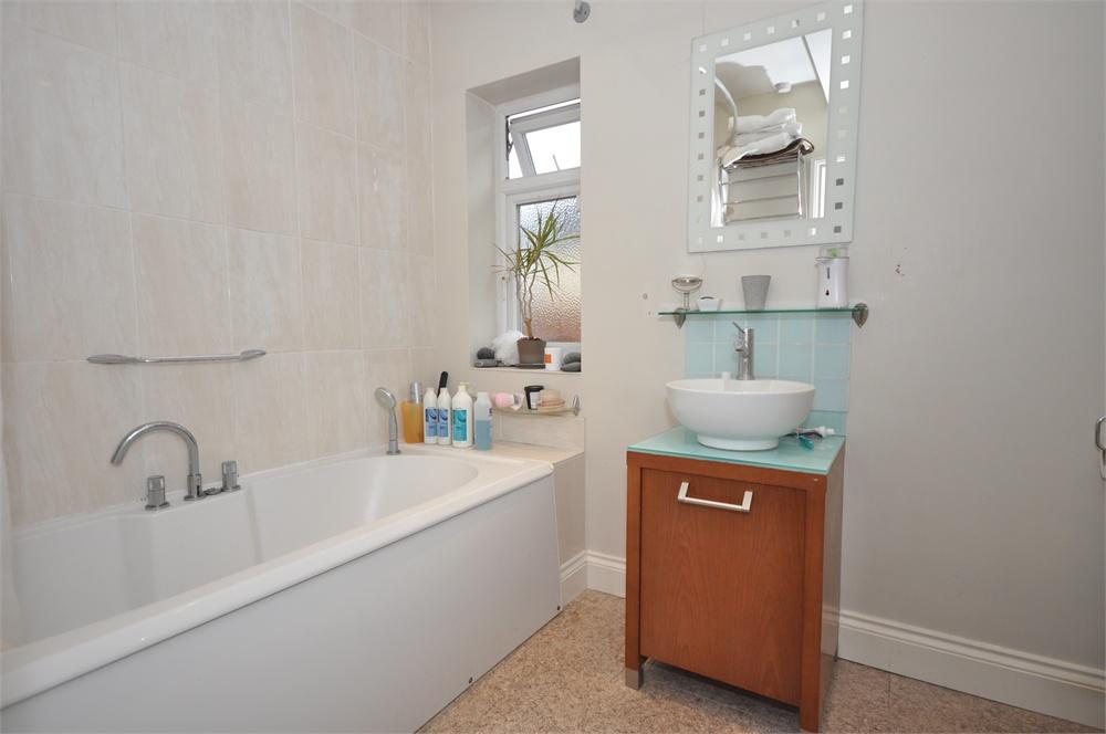 BathroomLarge family bathroom, shower over bath, heated towel rail, airing cupboard and spotlighting.