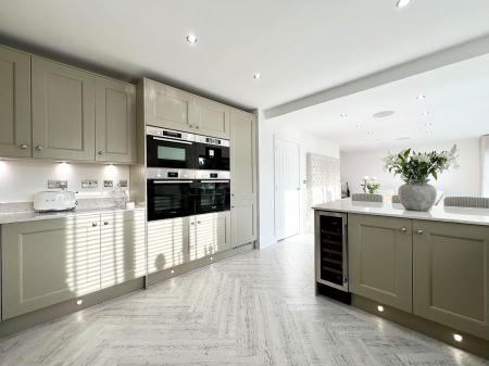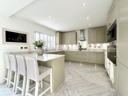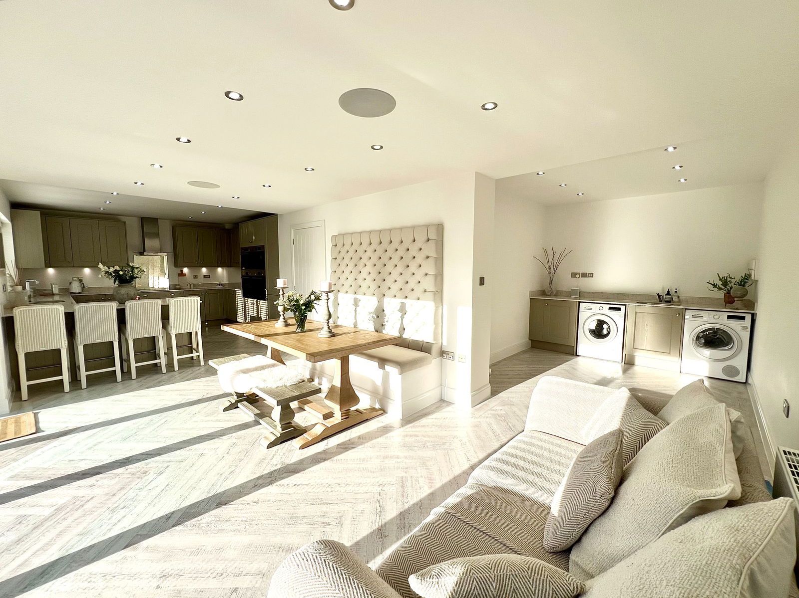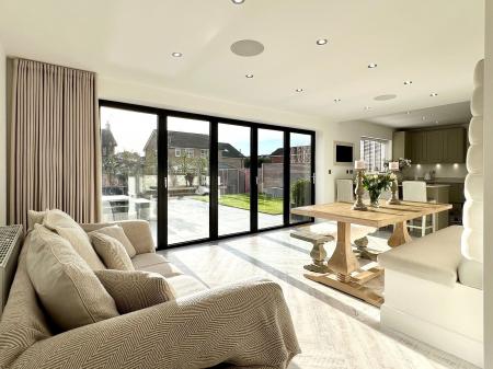 - Landscaped rear garden with outdoor kitchen and patio seating areas