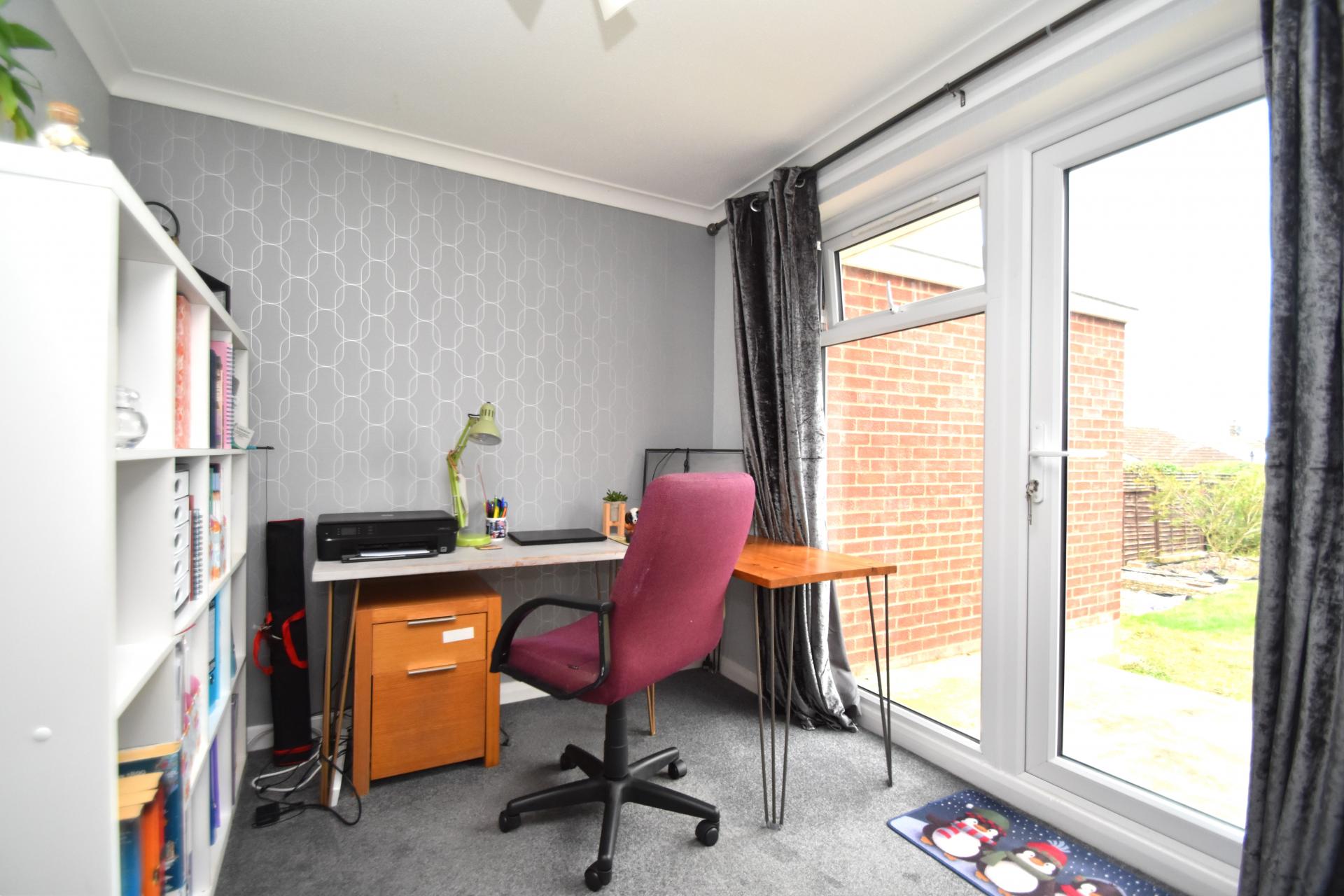 Bedroom 3/Home Office 9' 10" x 8' 0" (3m x 2.44m) (Rear Aspect) Double radiator, UPVC double glaze door leading to the rear garden, carpet, ceiling coving.