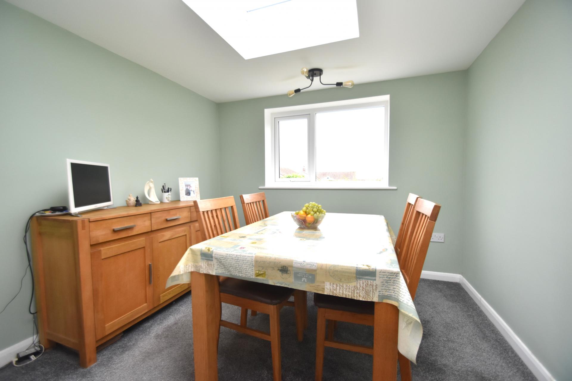 Dining Room 9' 7" x 9' 4" (2.92m x 2.84m) (Rear Aspect) A bright and airy room with double radiator, carpet and roof light.