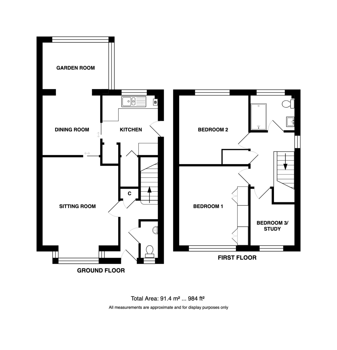 The accommodation is laid out over two floors and comprises an entrance hall, sitting room with bay window enjoying a southerly aspect, a dining room which opens to a garden room, fitted kitchen with access to the garden, downstairs cloakroom, modern first floor bathroom, two double bedrooms and a single bedroom/study. There is an insulated loft with drop down ladder. A gas boiler provides central heating and domestic hot water. There are well tended, manageable gardens on three sides and the property further benefits from a single garage accessed via Vincent Road at the rear.