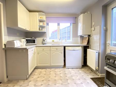 Kitchen 10' 1" x 8' 9" (3.07m x 2.67m) Plus large storage cupboard with space for a fridge freezer, further built-in pantry with folding door leading to under-stair storage cupboard, housing electric consumer unit and shelving. The kitchen is fitted with a range of base and drawer units with working surfaces over, matching wall units, open-end cupboards, one-and-a-half bowl sink with mixer tap, space and plumbing for a dishwasher, wall-mounted gas boiler providing central heating and domestic hot water, space and electric point for freestanding cooker, wall-mounted unit with glass sliding doors, radiator, tiled splashback, uPVC double-glazed window to rear aspect overlooking the garden, part glazed uPVC door to side garden.