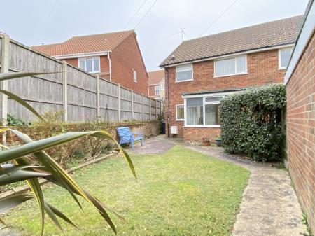 A tall gate gives access to a triangular side garden edged by fencing and a brick wall with raised bed planted with attractive flowers and shrubs. This area is paved and separated from the bin store by a block wall. It leads into the rear garden which is also partially paved and partially laid to lawn with a concrete path to a tall gate giving access onto Vincent Road at the rear. There are attractive borders planted with a variety of shrubs, grasses and flowers for year-long colour and interest. Fencing provides a good degree of privacy from neighbours and road. Beyond the gate is a hard standing leading to the garage 17' 1" x 9' 4" (5.21m x 2.84m) with up-and-over door, light and power.