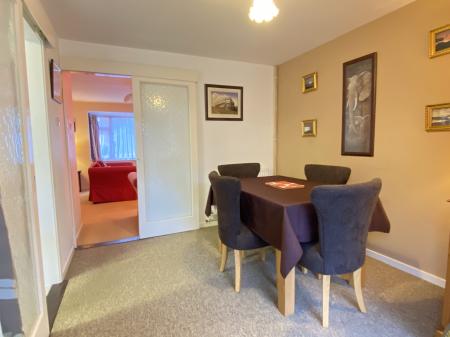 Dining Room 9' 5" x 9' 1" (2.87m x 2.77m) With radiator, glazed sliding door to kitchen and arch opening to;