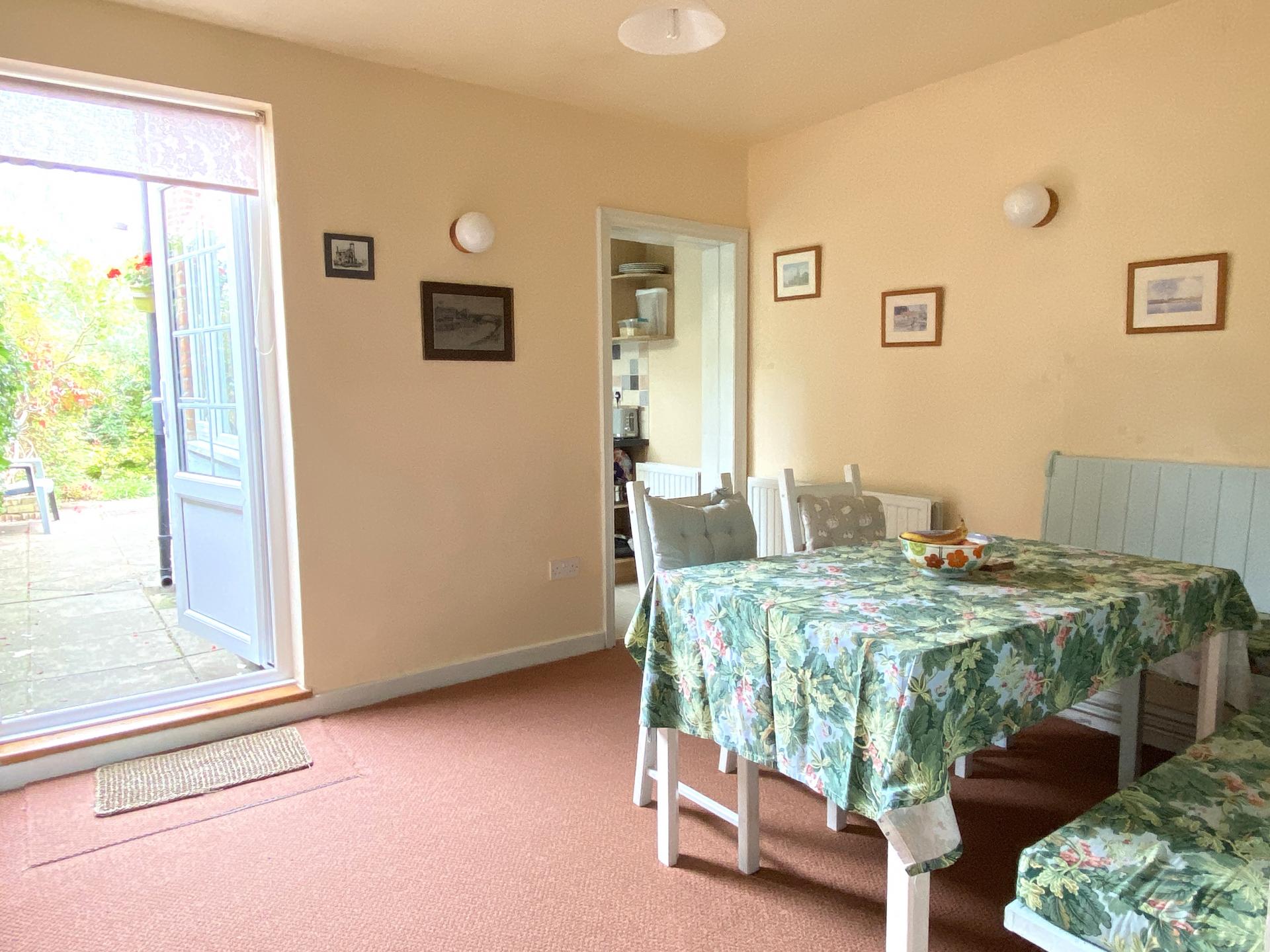 Dining Room 12' 4" x 10' 1" (3.76m x 3.07m) uPVC double glazed door to rear garden, capped gas fire, wall mounted gas boiler providing central heating and domestic hot water, built in storage cupboard, radiator, made to measure dining room bench, opening to: