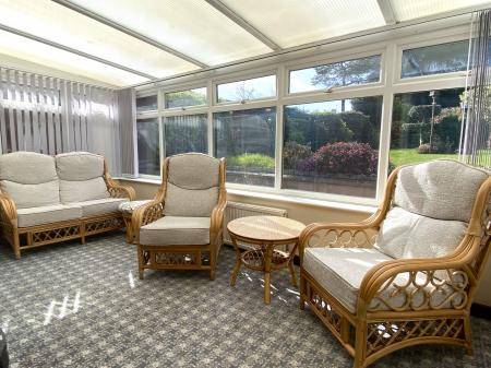 Conservatory 14' 5" x 7' 0" (4.39m x 2.13m) Of part brick/part uPVC double-glazed construction with vertical blinds, polycarbonate roof, radiator, wall-mounted lights, uPVC part glazed door to patio, further part glazed door to;