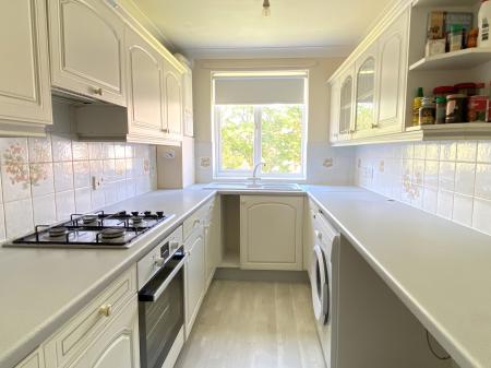 Kitchen 10' 10" x 6' 8" (3.3m x 2.03m) Fitted with a good range of white fronted base units with working surfaces over, matching wall units, glass display cabinets, integrated single oven, gas hob, extractor over, wall mounted gas fired boiler, inset sink unit, uPVC double glazed window to North West aspect, vinyl flooring, space and plumbing for automatic washing machine.