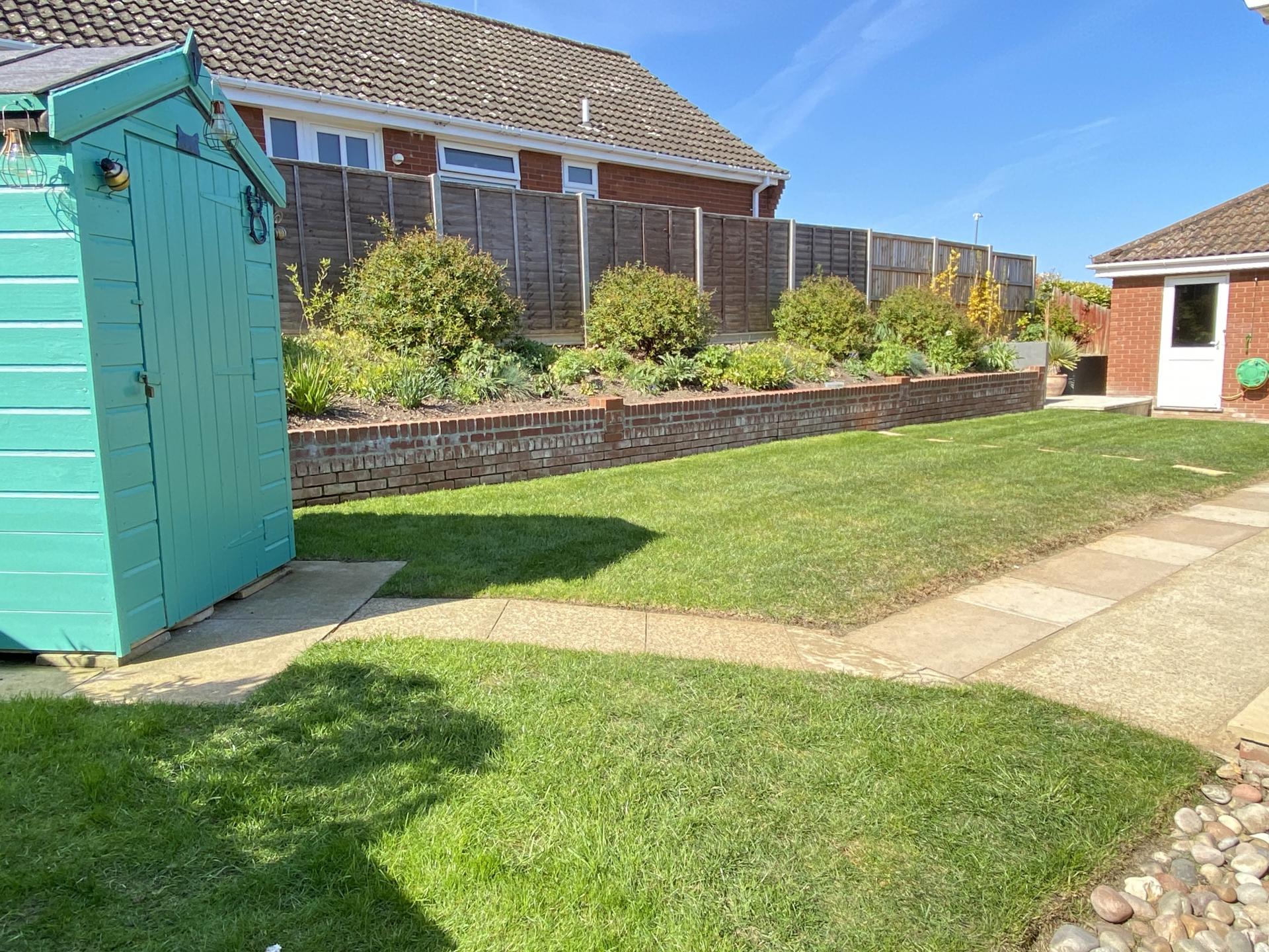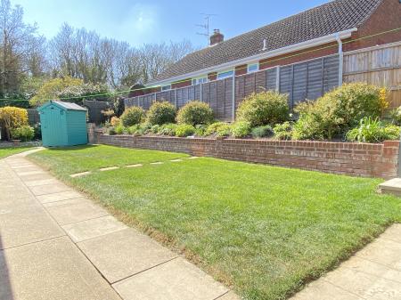 A tall gate gives access to the rear garden which extends down the far side and enjoys a south and west aspect. This too, is beautifully maintained and landscaped with raised beds held back by brick and flint retaining walls, planted with a wide variety of attractive flowers and shrubs for year-long colour and interest. The garden is enclosed by fencing and benefits from a shed. There is a paved seating area running along the rear of the bungalow and a further raised seating area at the far end of the garden in a nicely sheltered position.