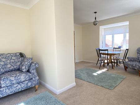 Dining Area uPVC double-glazed bay window to front aspect offering distant sea glimpses between buildings, high level side aspect uPVC double-glazed window, radiator, TV and telephone points.