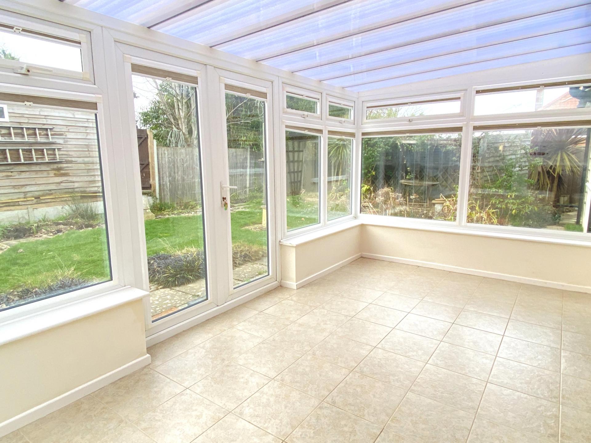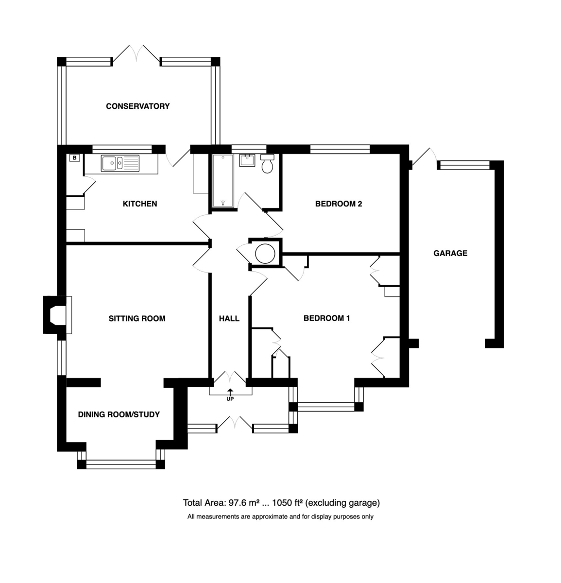 The accommodation includes an entrance porch opening into a welcoming reception area, leading to a bright and spacious sitting room with an archway to a versatile study/dining space. The fitted kitchen flows into a west-facing conservatory, perfect for enjoying views of the rear garden. There are two well-sized double bedrooms, one benefiting from an extensive range of fitted and built-in wardrobes, and a modern shower room.