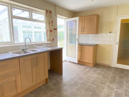 Kitchen 14' 5" x 8' 11" (4.39m x 2.72m) Fitted with a range of Shaker style base units with working surfaces over, matching wall units, one and a half bowl sink with mixer tap, space and plumbing for a dishwasher, space for a fridge freezer, space and electric cable or gas connection for a freestanding cooker with extractor fan over, radiator, tiled splash back, built in cupboard housing a gas boiler fitted on 16th of December 2024 and providing central heating and domestic hot water, window and glazed door to conservatory.