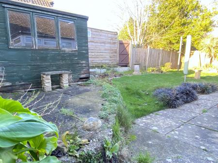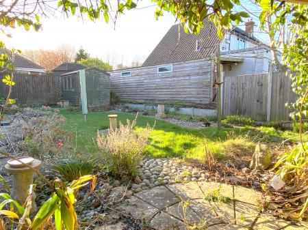 To the rear of the property is an attractive enclosed West facing garden with timber fencing down either side and a boundary provided by the brook that runs at the rear. Please note it is responsibility of the owner to keep it free-flowing. The rear garden is mainly laid to lawn with a raised patio and shed. To the north end of the garden is a covered timber shelter planted with climbers providing a lovely sheltered spot from which to enjoy the garden and is a real sun trap. There was a paved seating area, flint beds and attractive planting, outside tap and shed.