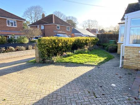 Immediately to the front of the property, the garden is mainly laid to lawn, edged with a neatly tended hedge and fencing with concrete paths from the gateway to the front door and down the side of the building. A triangular bed is planted with mature groundcover provided by Firs, Lavender and shrubs. There is a raised bed along the side of the path leading to a tall gate into the rear garden. This too is planted with attractive flowers for year-long colour and interest.
