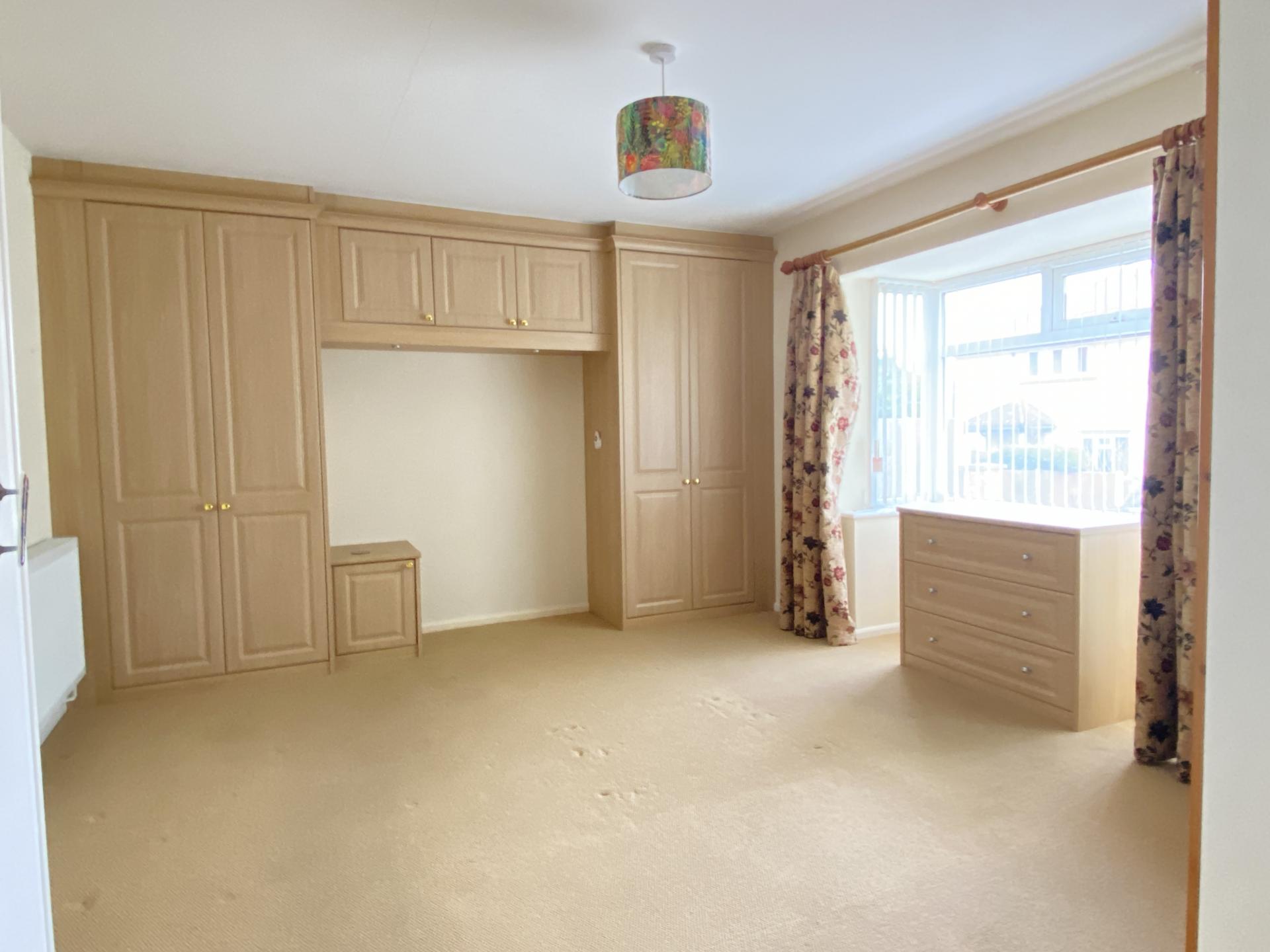Bedroom 1 15' 0" x 12' 5" increasing to 14'3" (4.57m x 3.78 increasing to 4.47m) into uPVC double glazed bay window with vertical blinds and fitted with a range of bedroom furniture including two double wardrobes with overhead storage and dressing table, a further built-in range of wardrobes, radiator, and hatch to access the cylinder.