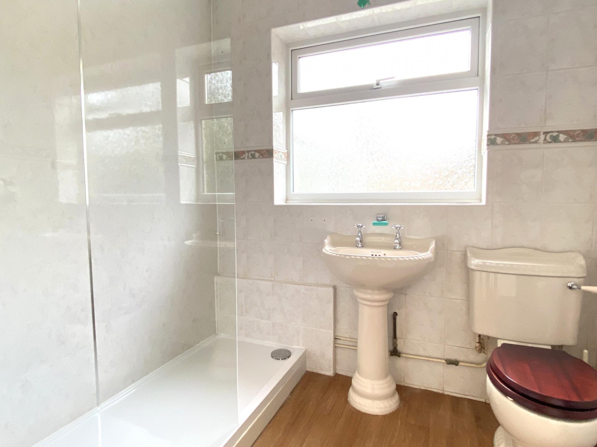 Shower Room 7' 5" x 6' 10" (2.26m x 2.08m) Large walk-in modern shower cubicle with glazed panel and electric Mira sport shower over, pedestal basin with taps, low level WC, uPVC double glazed window to rear aspect with obscure glass, heated towel rail, tiled walls, wall mounted light, shaver point, extractor fan.