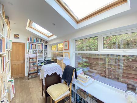 Study 15' 2" x 6' 7" (4.62m x 2.01m) pine boarded floor, uPVC sealed unit double glazed windows and twin velux windows, inset ceiling lighting, radiator, door to: