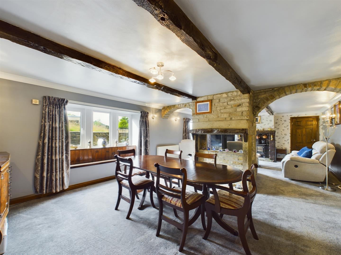 - Character features throughout including stone mullion windows and exposed beams