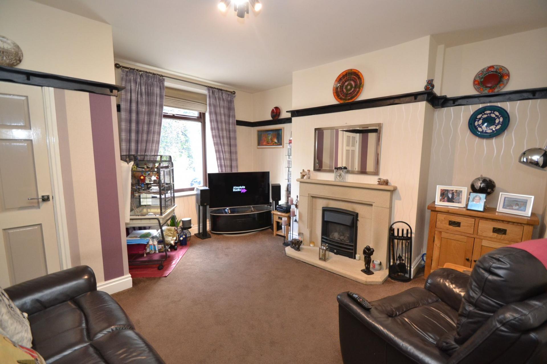 Here we have a lovely mid-stone terrace offering 2 double bedroom accommodation planned over three floors plus a useful dry storage cellar. Comprising, front entrance vestibule, lounge with feature fireplace and living flame coal gas fire, modern fitted kitchen in cream with space for a small breakfast table and chairs, access down to the storage cellar, first floor, master bedroom with a feature display fireplace, superb bathroom suite in white with a free standing bath and large walk in shower cubicle, stairs to second floor double bedroom with two dg skylight velux windows. The property benefits from wood grain Upvc dg windows and doors, gch and a combi-boiler, front on street parking, rear enclosed garden with a flagged Indian stone garden. Overall a home for FTB'S.