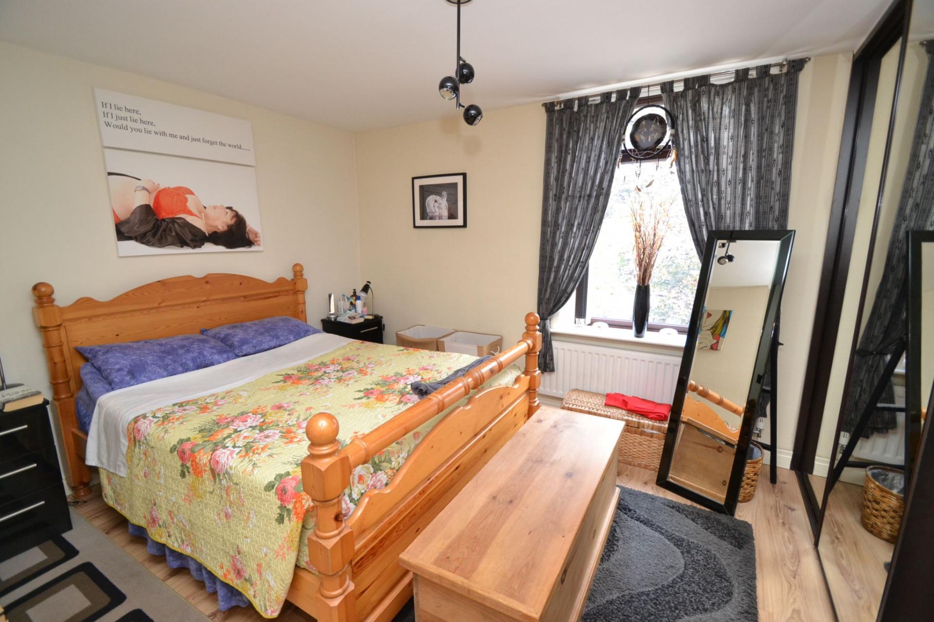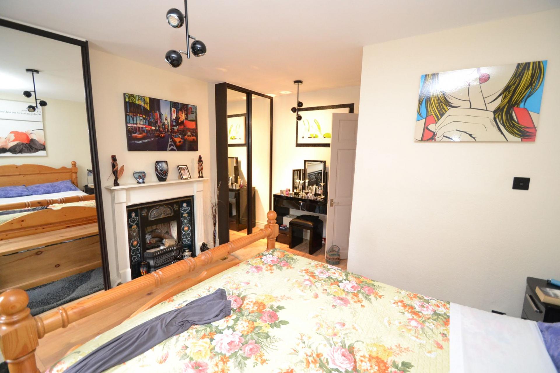 Bedroom 1: 4.35m x 3.78m (14'2 x 12'4). Upvc dg wood grain window to front, radiator, feature display Adam style fireplace with an open log feature effect fire, twin fitted mirror robes, laminate floor.