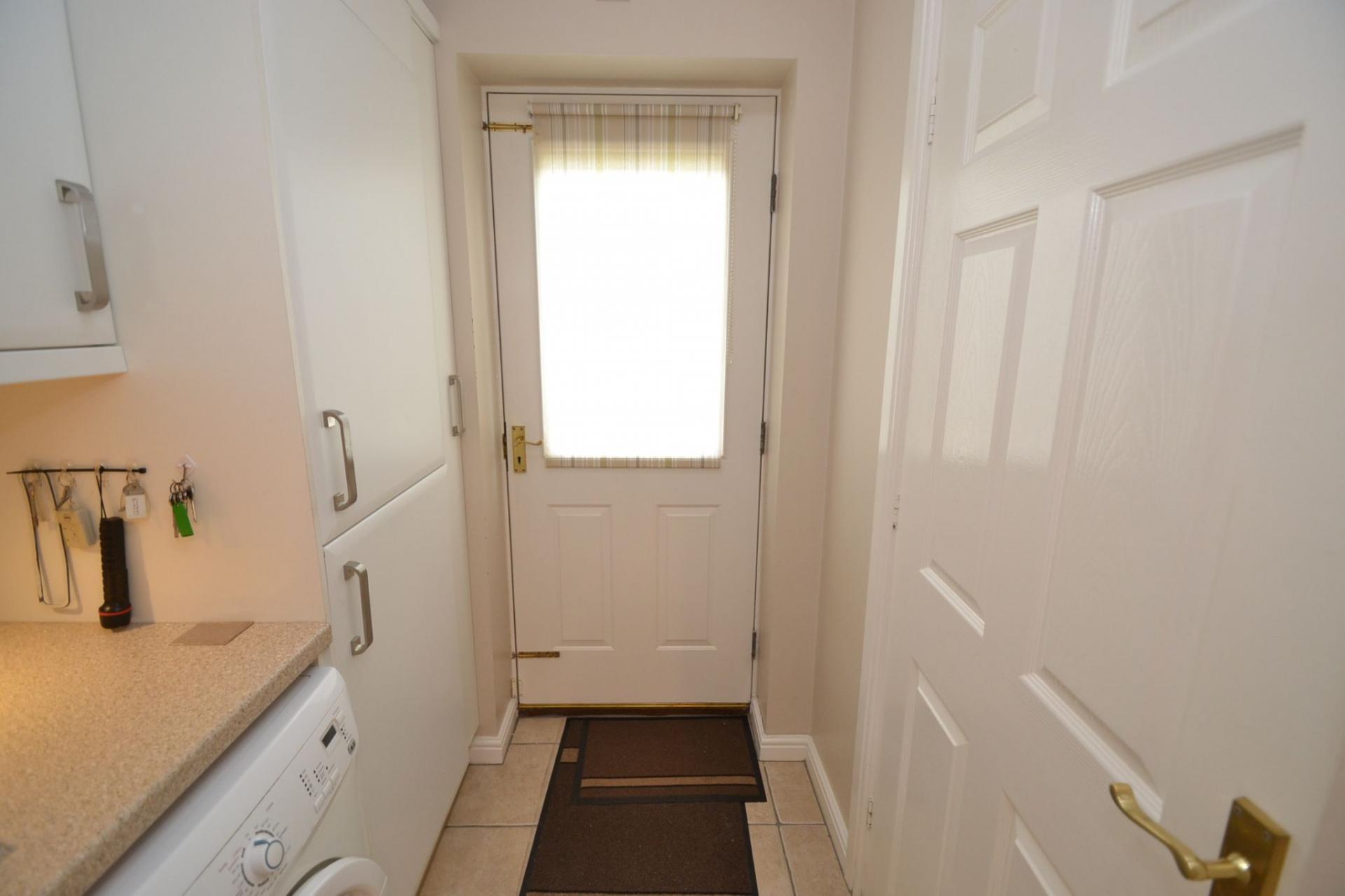 Utility Room: 1.65m x 1.49m (5'4 x 4'8). Range of units and and integrated fridge freezer, plumbed for an auto-washer, side door, tiled floor.