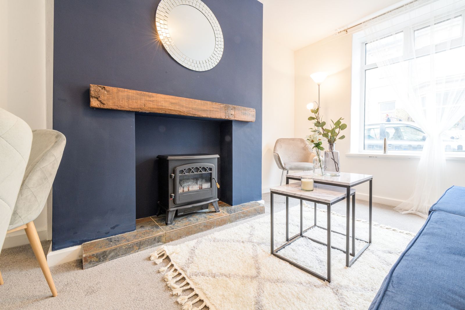 Lounge: 4.42m x 4.10m (14'6 x 13'5). Front composite door, Upvc dg window to front, radiator, feature chimney breast with oak lintel and tiled hearth along with an electric wood burner stove, space for a table and chairs.