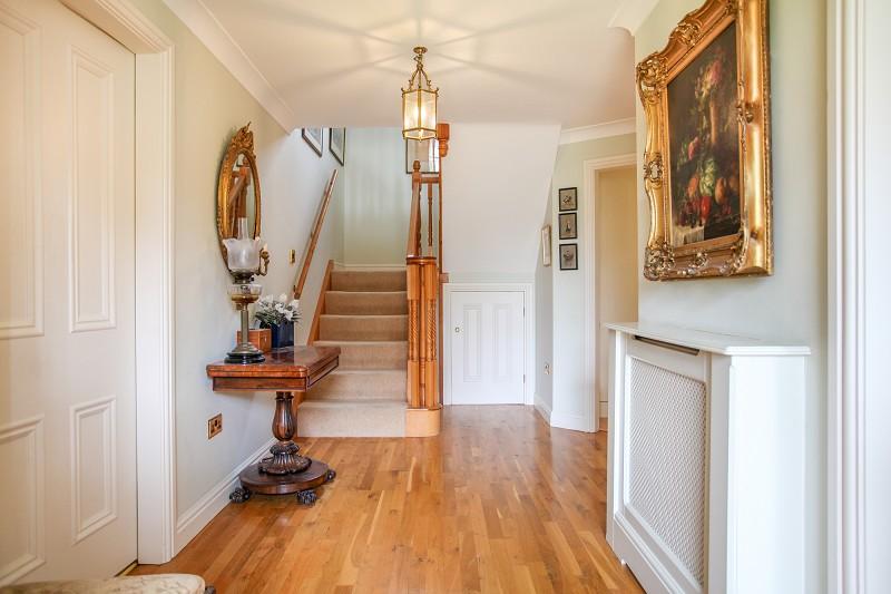 With solid timber flooring, easy staircase rising to first floor with barley twist spindle balustrade. Substantial panelled oak front door. Single radiator with cabinet surround. Built in understairs storage cupboard. Double built in cloaks cupboard.