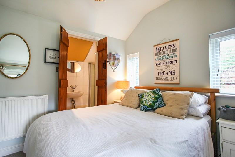 With single radiator, lower level opening windows, juliet balcony overlooking garden. Double built in wardrobe, partially vaulted ceiling and double doors opening to en suite shower room/wc.