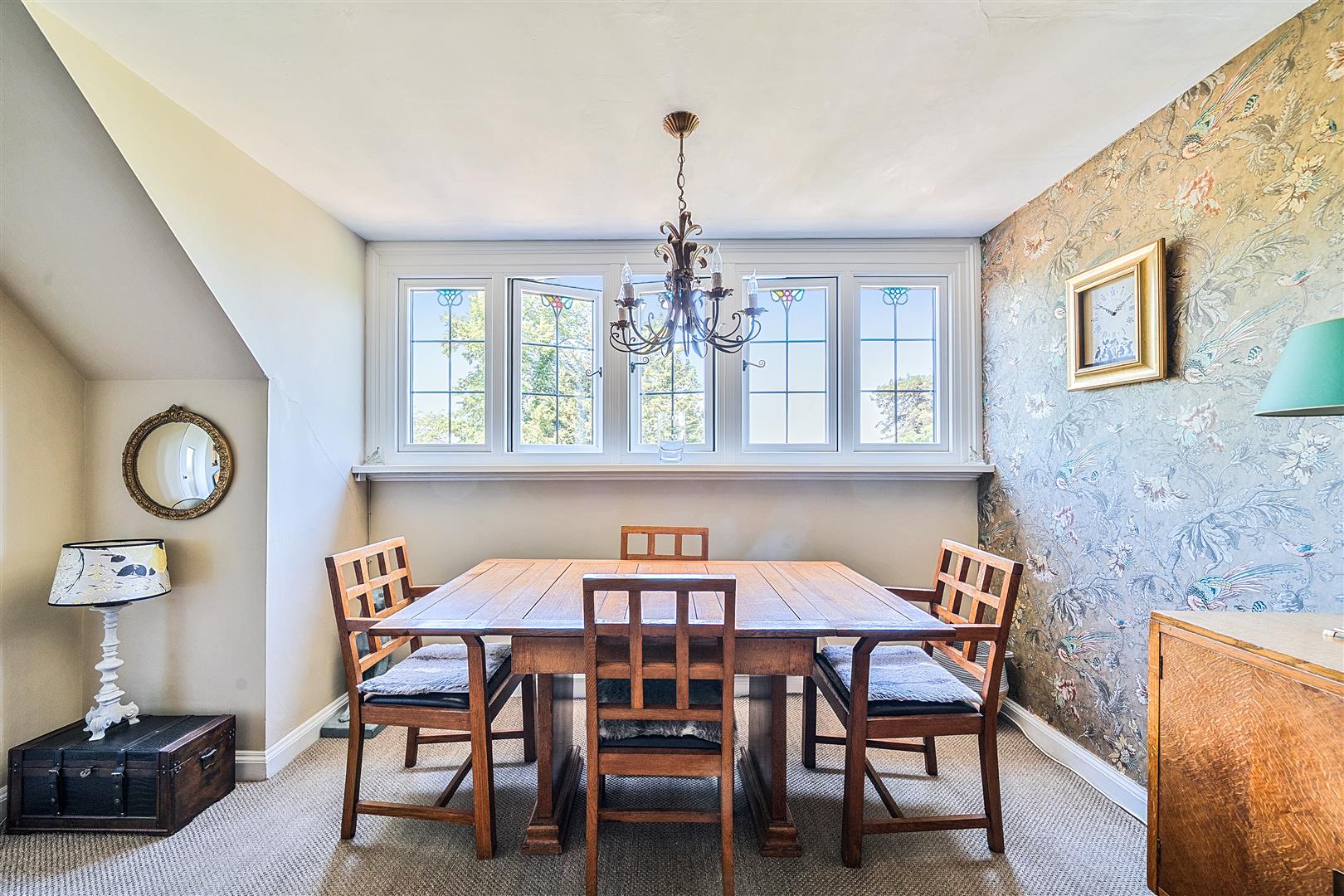 (1st) Floor Landing - Leaded light bay window, carpeted stairway to: