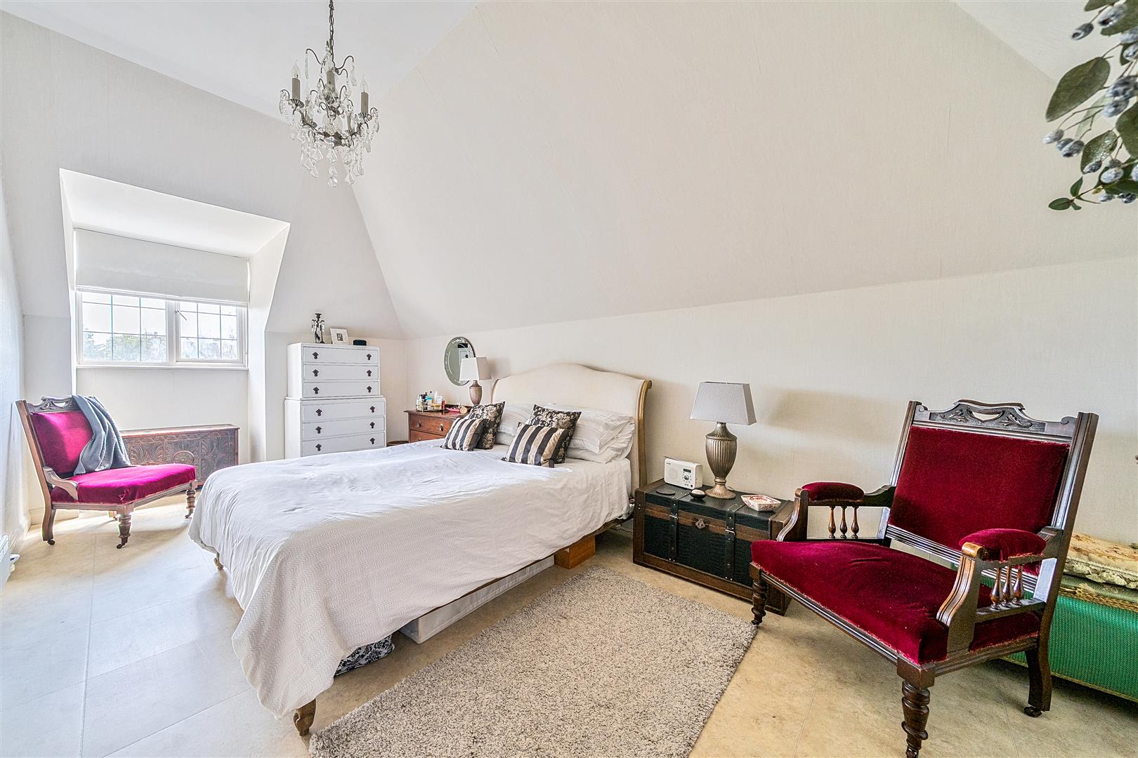Walk-In Wardrobe - 3.81m x 2.29m (12'6 x 7'6) - Front gable with light, hatch leading to eaves storage area, vinyl flooring.