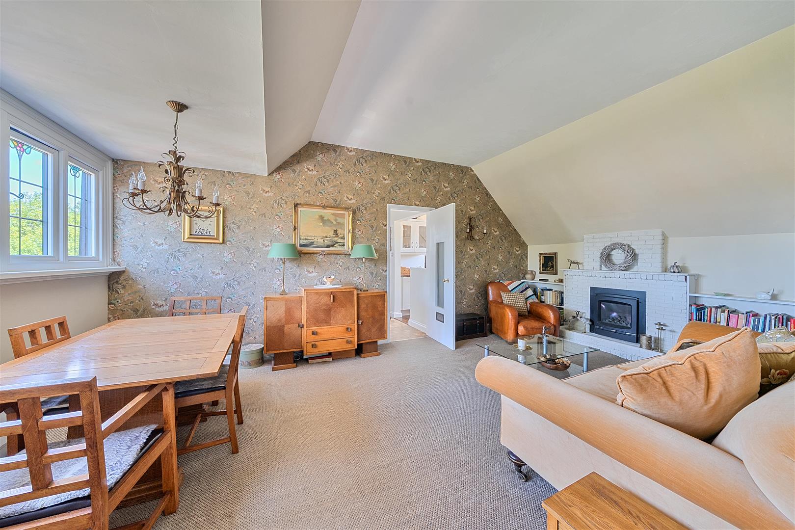 Reception Room (Onwards) - 5.97m x 3.81m (19'7 x 12'6) - Double glazed windows to front (within 10 year FENSA guarantee), brick fireplace with 'GASCO' coal-effect fire (not tested by Charles Eden), wall-mounted electric panel convector, fitted carpet.