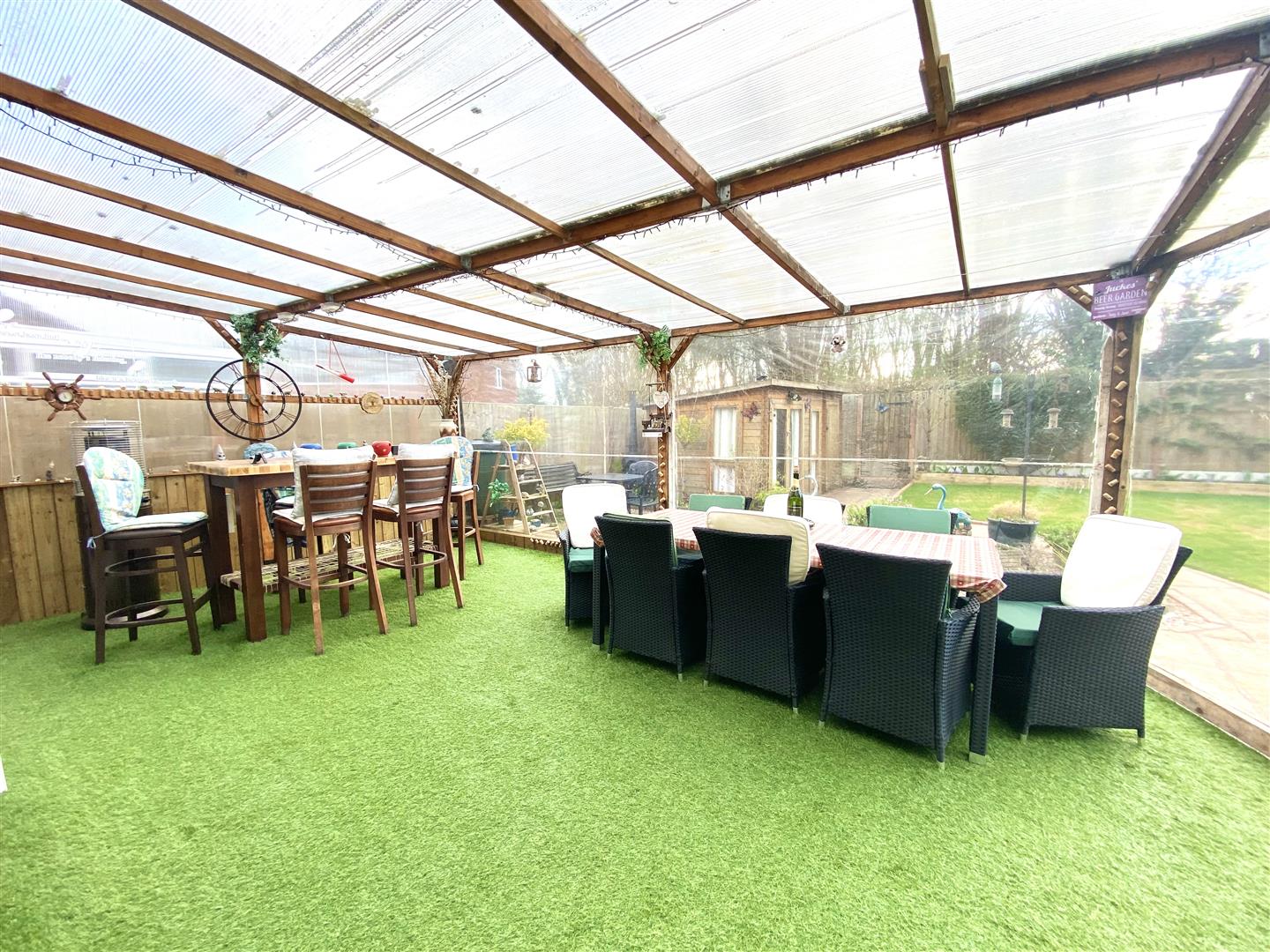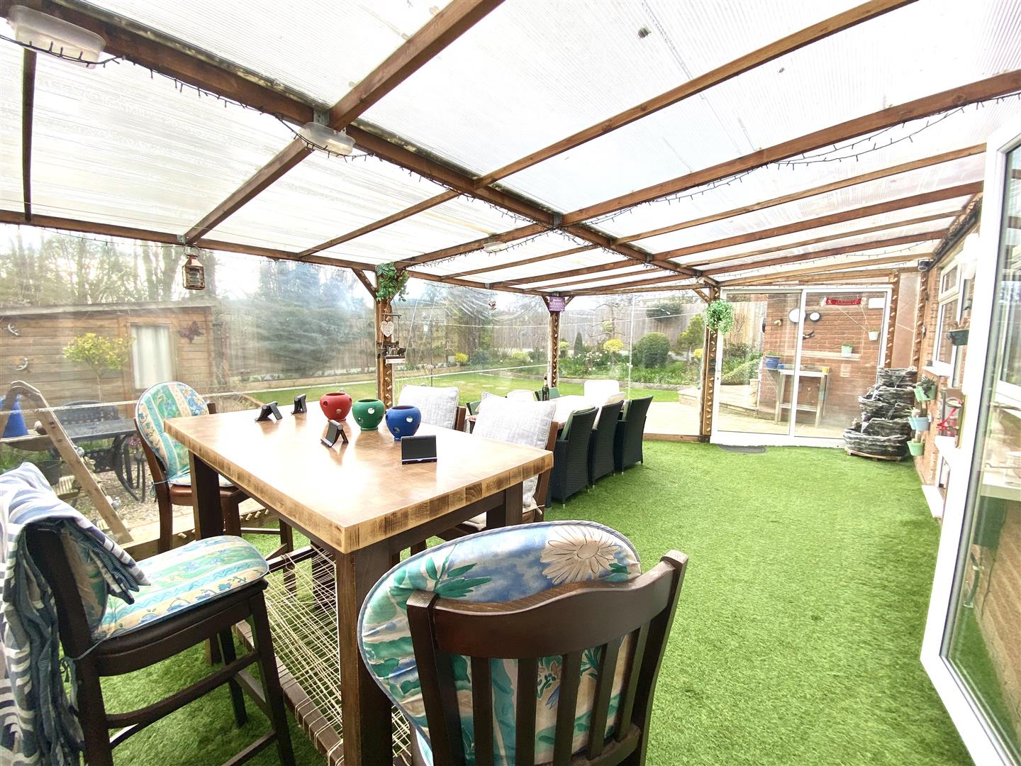 Timber Framed Lean-To Garden Shelter - Enclosed on all sides with patio doors allowing access to the garden