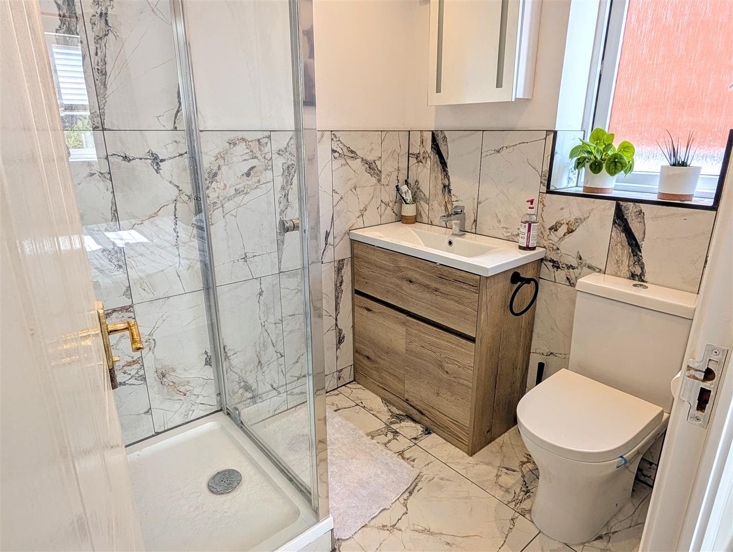 There is a neatly kept, SOUTH FACING REAR GARDEN laid to lawn with a paved patio, shrubbery borders and a further randomly paved terrace. The whole enclosed by wooden fencing.